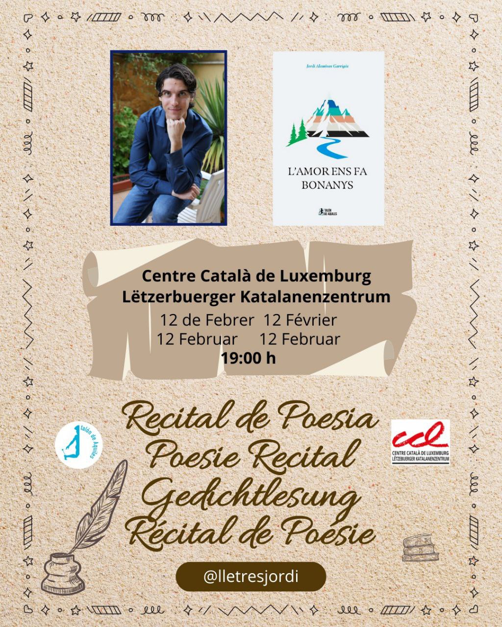 Jueves 12 de febrero, tiene la 19 horas, us convidem a un recital de poesia al local. Hi presentarem el llibre El amor nos hace felices del poeta Jordi Alaminos.